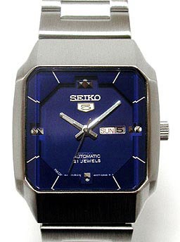 写真では判りにくいですが、カットガラスを使用してケースのシャープなデザインと一体になった、かなり凝った物です。文字盤の色はもう少し薄い綺麗なブルーです。程良い大きさから女性にもピッタリ、カワイイですよ!