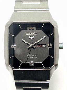 写真では判りにくいですが、カットガラスを使用してケースのシャープなデザインと一体になった、かなり凝った物です。文字盤の色はつや消しのダークグレイです。
