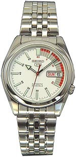 生産中止になりまして、最近になり海外での生産が始まりました。それだけ好評なんでしょうね! このシリーズは文字盤やベゼル/ケースの仕上げが、かなり美しいだけでなくどれも上質で、 ベルトも巻きベルトながら充分な肉厚を持ったタイプになり、バックルもプッシュ式ですから 全く非の打ち所がありません!是非あなたも新しい SEIKO 5 を手にとってお確かめ下さい! |