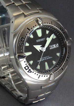 ベゼルの一部を除き全てヘアライン仕上げです。下の写真からそのすばらしい質感を感じ取っていただけると思います。ベルトはステンレス無垢で、ピン式連結です。
