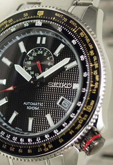 | 文字盤は左の写真のように光沢のある黒の細かい十字格子模様です。また、それは格子の内側が凹んで凹凸のあるたいへんこった物で、高級感抜群です。 各部の詳細は姉妹機のSSA007J1と同じですので、その拡大写真のページもご参照くださいませ。とにかく素晴らしいです。 ベゼル内側部分はブラックハードコート仕上げです。また、ケース(正面サイド共)と、ベルトサイド部分はポリッシュ仕上げで、その他ベルト正面部分はヘアライン仕上げ(ベルトの一部はポリッシュ仕上げ)です。 |