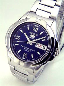 | 写真の通り、たいへん綺麗な時計です。とても綺麗な深いぐんじょう色の文字盤なのですが、どうしてもうまく撮れませんでした。すみませんm(_"_)m この文字盤は一見、右端の写真のように単一の黒のようにも見えるのですが、実は深い紺(ぐんじょう)色で、(写真では見えませんが)インデックスの内と外では微妙に仕上げが異なっていまして、角度によっては二重円のように見え、もの凄く上品です。この5スポーツのシリーズでは珍しい、上品でありながら、その実、10気圧防水のスポーティー時計というところは、一粒で2度美味しい感じで、とっても良い感じです!オンオフ両方どうぞ!(^^) |