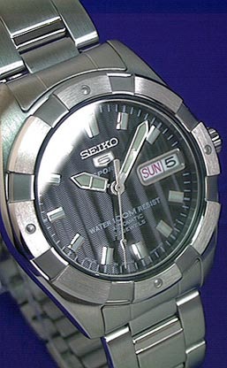 | 写真では分かりにくいですが、文字盤には綺麗な黒い色で波模様が凹凸で入っています。ですから、見る角度によっては写真のように文字盤全体に縦縞が入ったようにも見えますし、右の写真のように真っ黒のようにも見えます。驚くほど高級感がありますよ!波模様はよく見かけますが、こんなパターンはあまり他では知りませんね!また、同じくインデックスもかなり凝った綺麗なものが付いています、カチッとした台形型で上の部分が夜光で、他の4面は綺麗にポリッシュ仕上げされています。 それから、ケースとベルトはヘアライン仕上げですが、ケースサイド・ベルトサイド・ベルトの真ん中部分の間はポリッシュ仕上げです。更に、ベゼルの凹部分はマット仕上げです!文字盤・インデックス・ケース・ベルト共々、いかにもお金がかかってます! 5 SPORTSのページへ |