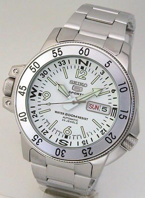 ベゼル部分はシルバーですが、文字盤は艶消しの白です。針は長針/短針とも中心付近は白で、それ以外はシルバーポリッシュに夜光です、また、秒針も同じくシルバーポリッシュで先の三角には夜光があります。