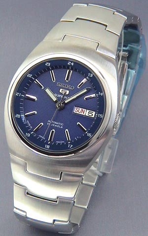 文字盤の色は綺麗な濃い目の青で、艶ありですが、その格子模様のおかげで、艶っぽさはありません。色は例によって光線の具合でいろいろ変わります。この写真でよくお判りかと思いますが、ケースベルトともオールヘアライン仕上げで、押し出し強く重厚感抜群で、本当に渋い時計です!そう言えばこのシリーズから、文字盤に100m防水の表示が無くなって、ずいぶんすっきりした好印象になりました!