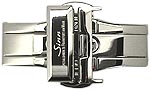 ■Sinn用純正革(ラバー)ベルト用三つ折れバックル 今まで革ベルトを毎年換えていて「不経済!」と嘆いていたあなたに贈ります!(笑) これを革ベルトの尾錠に付け替えると、装着時の落下防止や、使い勝手の向上、 革ベルトの寿命が飛躍的に延び、また、時計そのものの高級感が一段と上がる 嬉しいパーツです!ほとんどのSinn純正ベルトにそのまま装着できます! マット/つや消し仕上げ(写真上)、尾錠部分の巾18mm。 ポリッシュ/ピカピカ仕上げ(写真下)、尾錠部分の巾18mm。 |